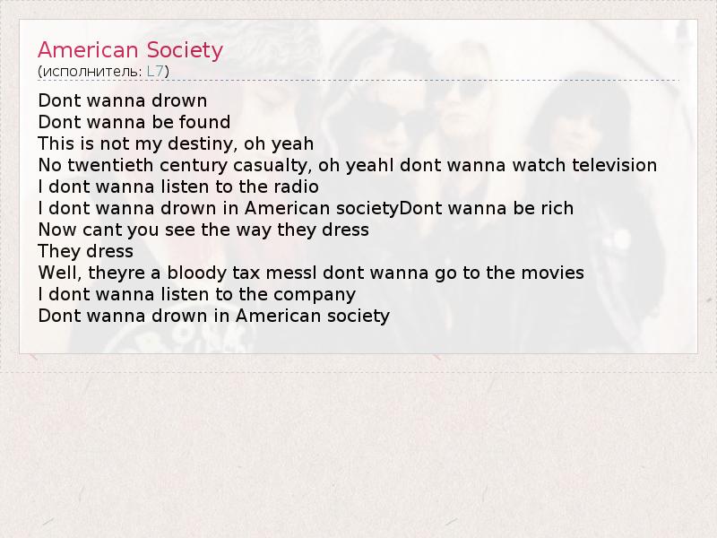 А как ты думаешь, о чем песня "American Society" ?