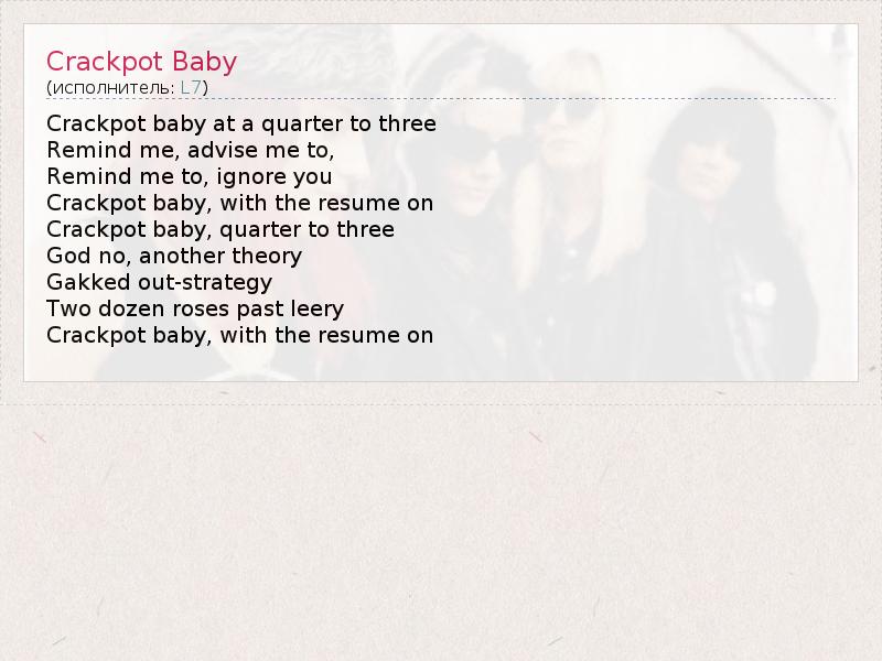 А как ты думаешь, о чем песня "Crackpot Baby" ?