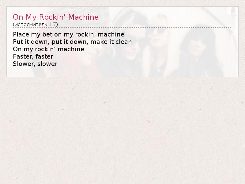 А как ты думаешь, о чем песня "On My Rockin' Machine" ?