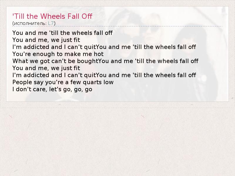 А как ты думаешь, о чем песня "'Till the Wheels Fall Off" ?