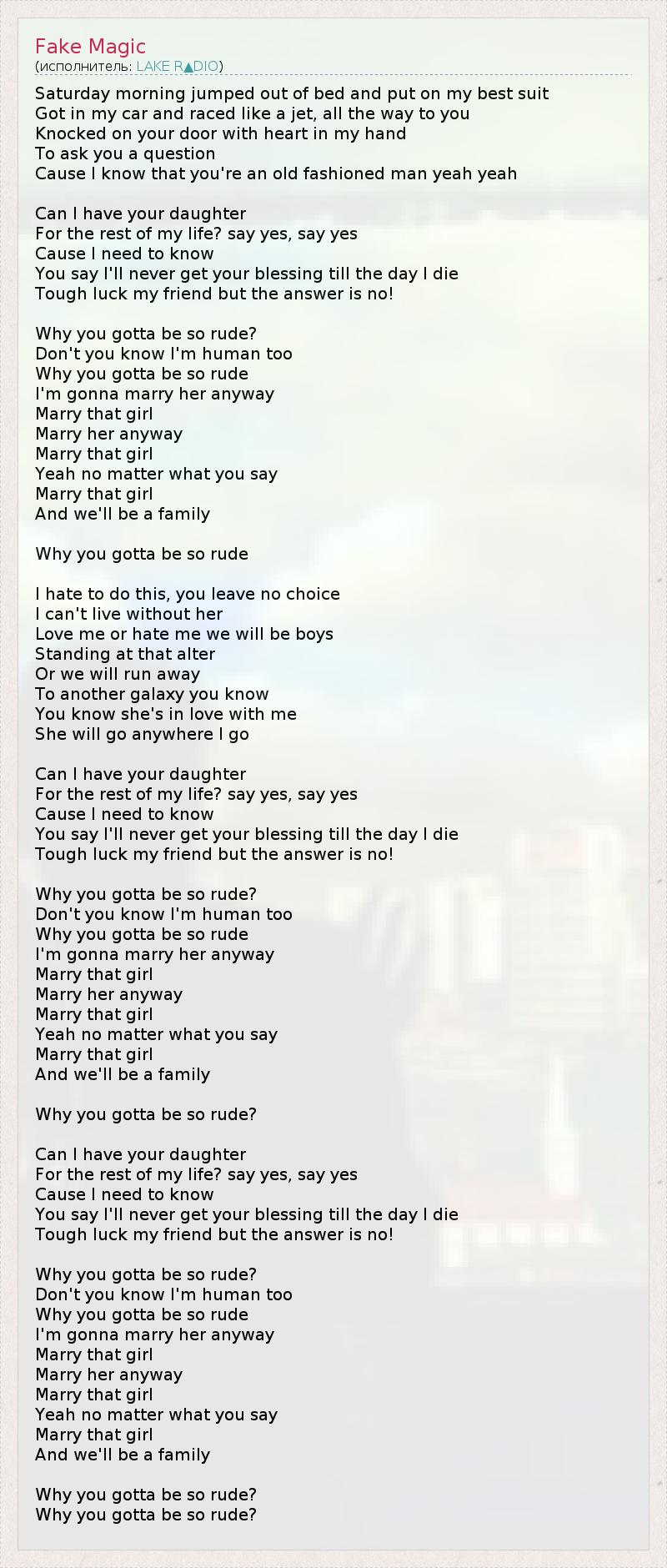 А как ты думаешь, о чем песня "Fake Magic" ?