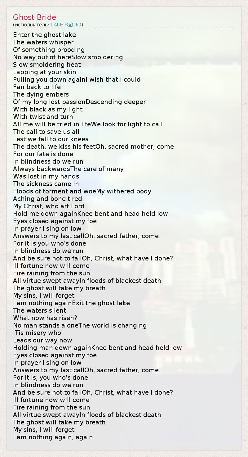 А как ты думаешь, о чем песня "Ghost Bride" ?