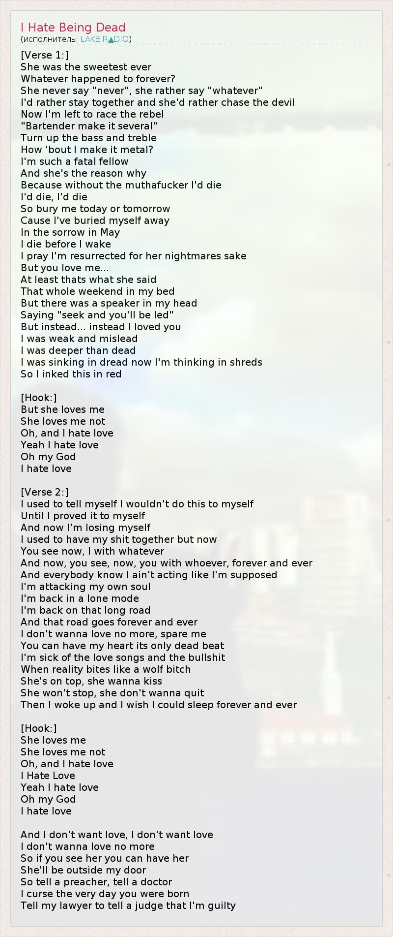 А как ты думаешь, о чем песня "I Hate Being Dead" ?