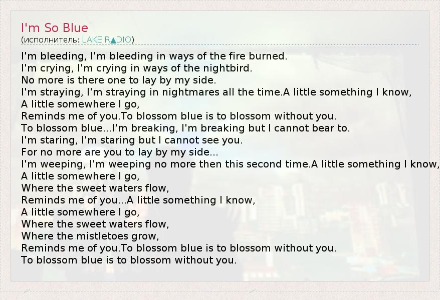 А как ты думаешь, о чем песня "I'm So Blue" ?