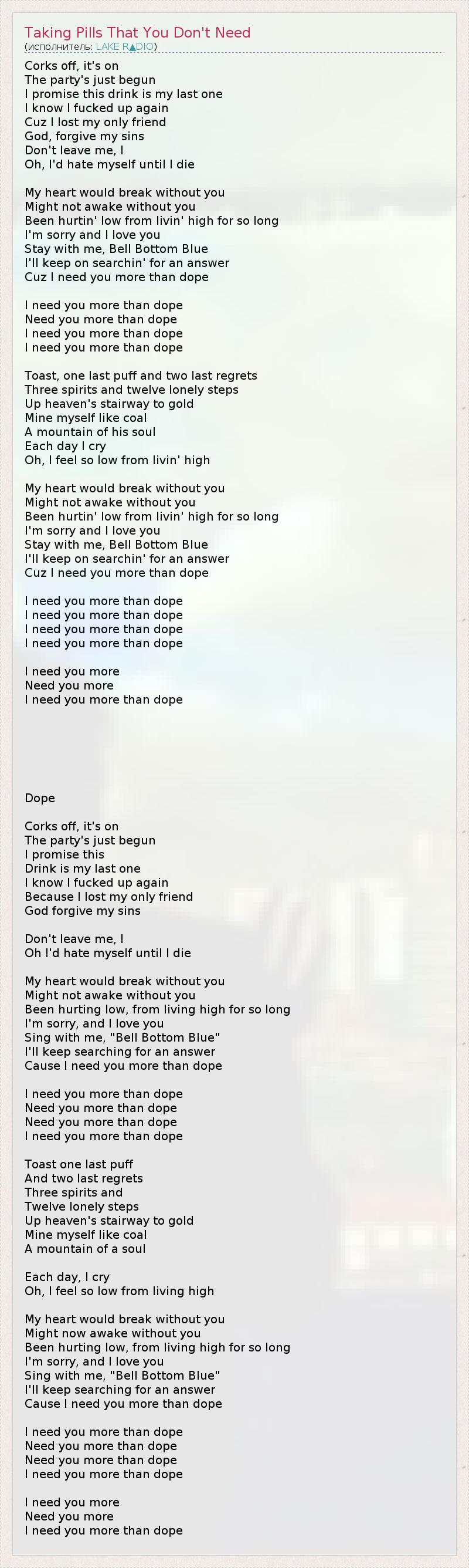 ГлавнаяИсполнителиLAKE R▲DIOTaking Pills That You Don't Need