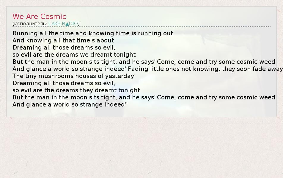 А как ты думаешь, о чем песня "We Are Cosmic" ?