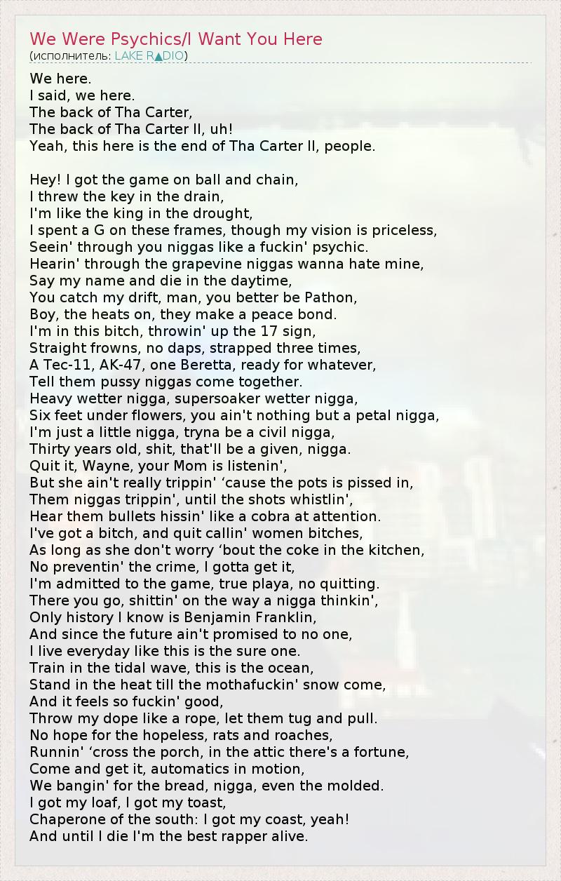 Я вижу вас насквозь, ниггеры, как долбанный экстрасенс.