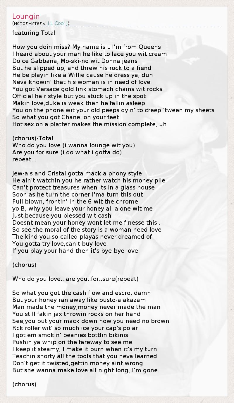 Это интересно:Если бы 45 лет назад журналисты узнали вдруг, что зимой 1968-го года в самом эпицентре метаморфоз американской культурной жизни, в городе Нью-Йорке появится на свет один из первых знаменитых рэпперов на планете, они бы, наверное, удивились. Наверняка пристальное внимание к персоне Джеймса Тодда Смита надоело бы в первую очередь ему самому. Но как бы то ни было, сколько он себя помнит, все это... продолжение