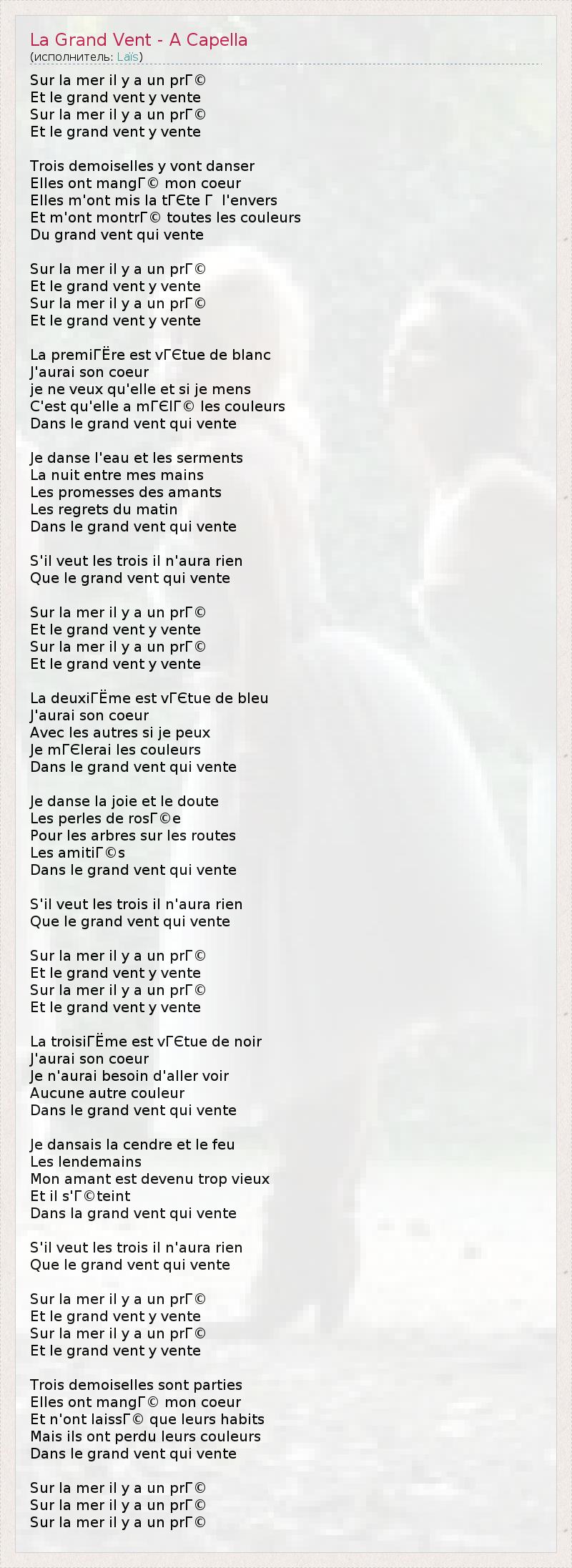 ГлавнаяИсполнителиLaïsLa Grand Vent - A Capella