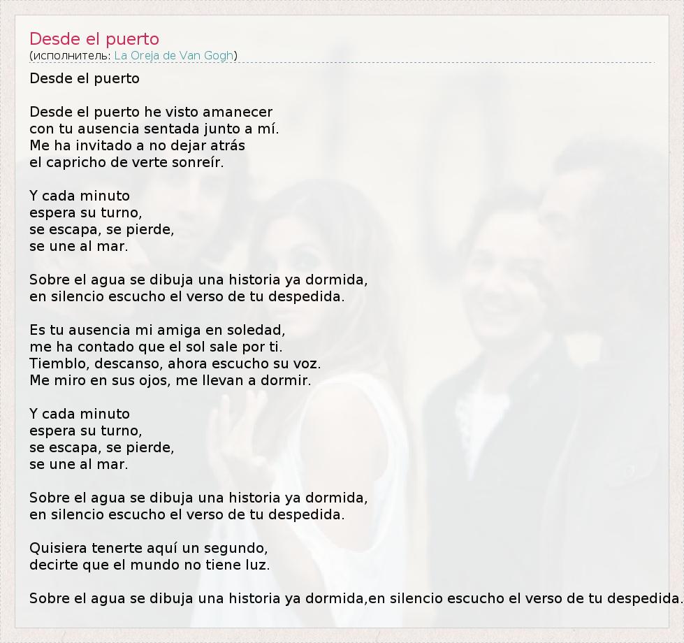 А как ты думаешь, о чем песня "Desde el puerto" ?
