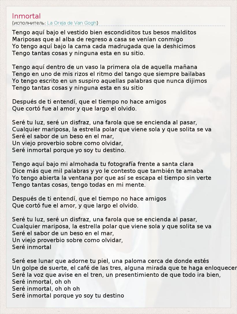 Это интересно:В 1996 году 4 друзей из Сан-Себастьяна организовали группу, чтобы играть песни своих любимых групп. Это были Пабло, Аритс, Альваро и Хави – очень хорошие музыканты с огромным желанием создавать свои собственные песни, но у них не было солистки. В 1996 году Пабло в университете познакомился с Амайей и предложил ей стать солисткой. Так возникла "La Oreja de Van Gogh” и с собственным репертуаром они... продолжение