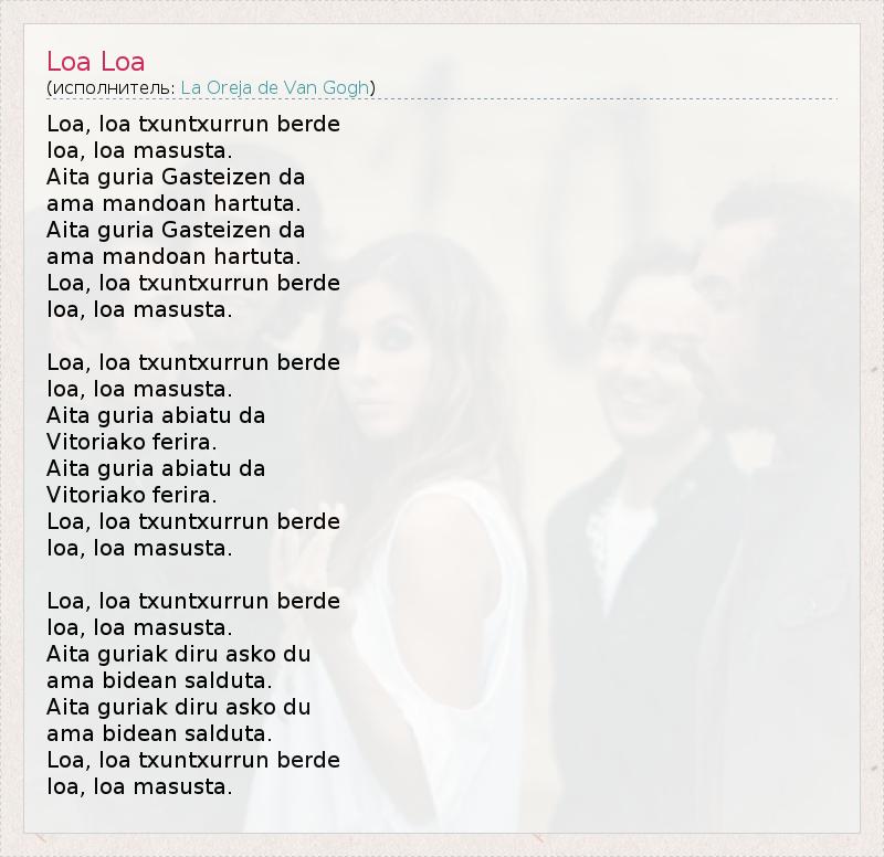 А как ты думаешь, о чем песня "Loa Loa" ?