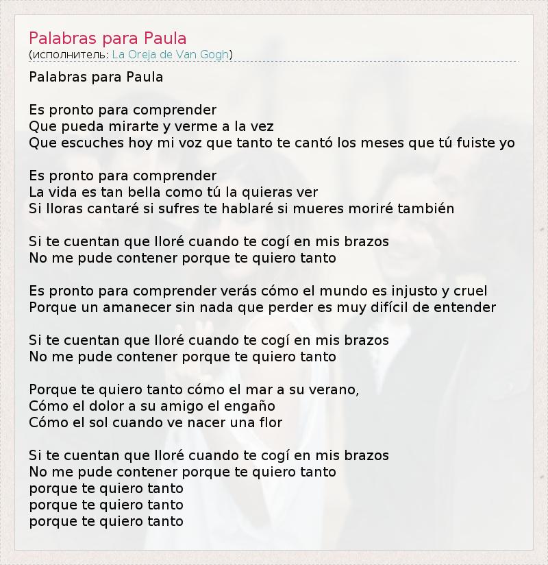 А как ты думаешь, о чем песня "Palabras para Paula" ?