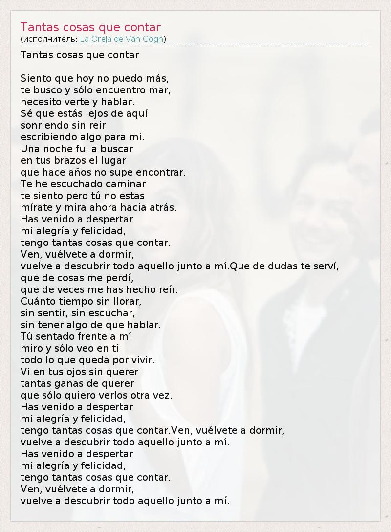 А как ты думаешь, о чем песня "Tantas cosas que contar" ?