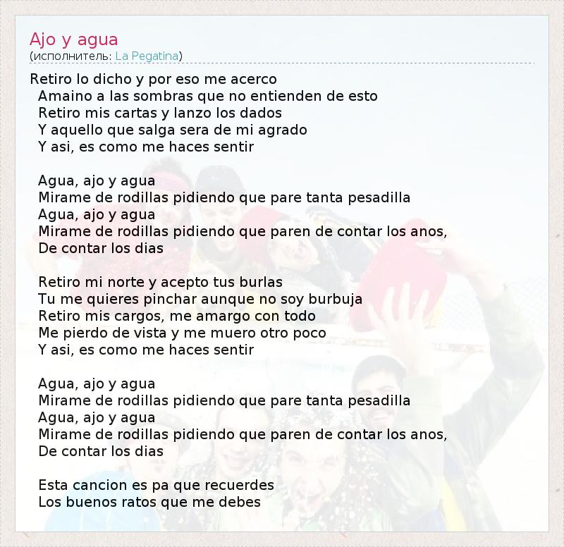 А как ты думаешь, о чем песня "Ajo y agua" ?