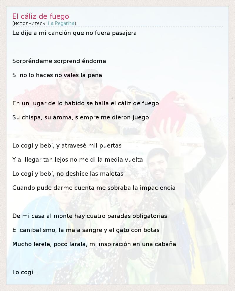 А как ты думаешь, о чем песня "El cáliz de fuego" ?