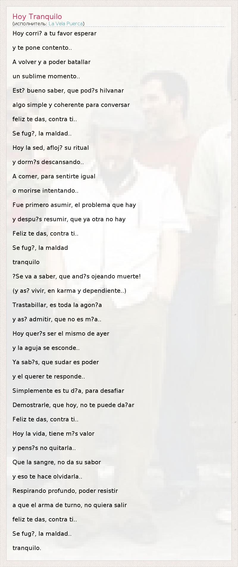 А как ты думаешь, о чем песня "Hoy Tranquilo" ?