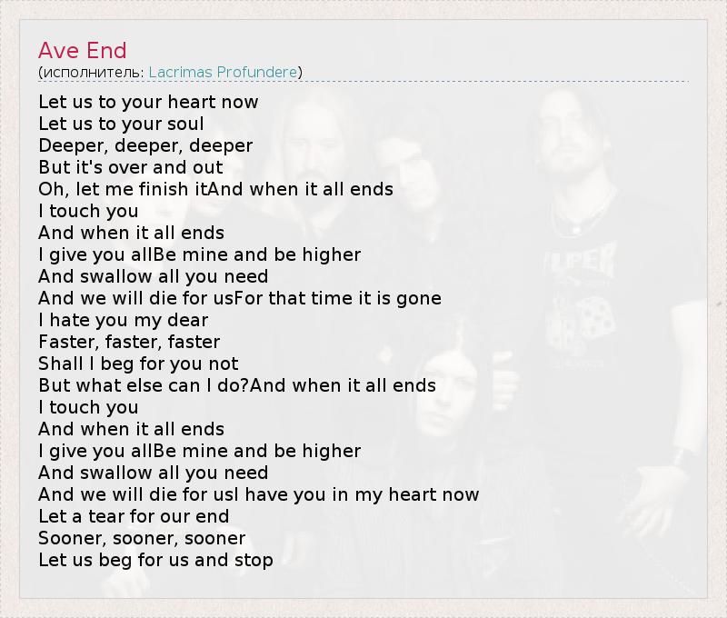 А как ты думаешь, о чем песня "Ave End" ?