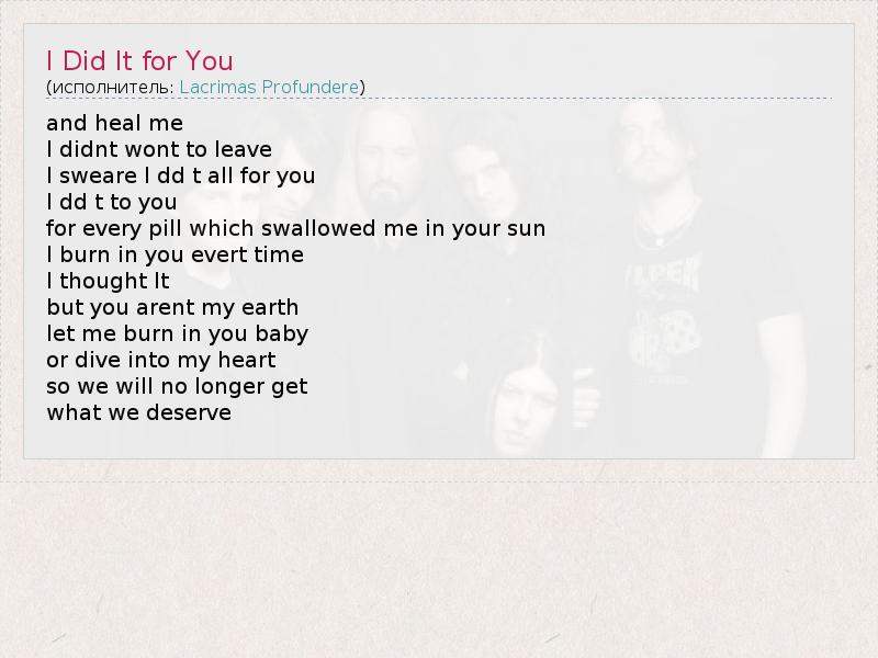 А как ты думаешь, о чем песня "I Did It for You" ?