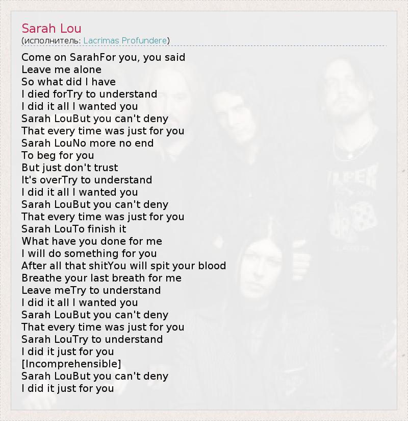 А как ты думаешь, о чем песня "Sarah Lou" ?
