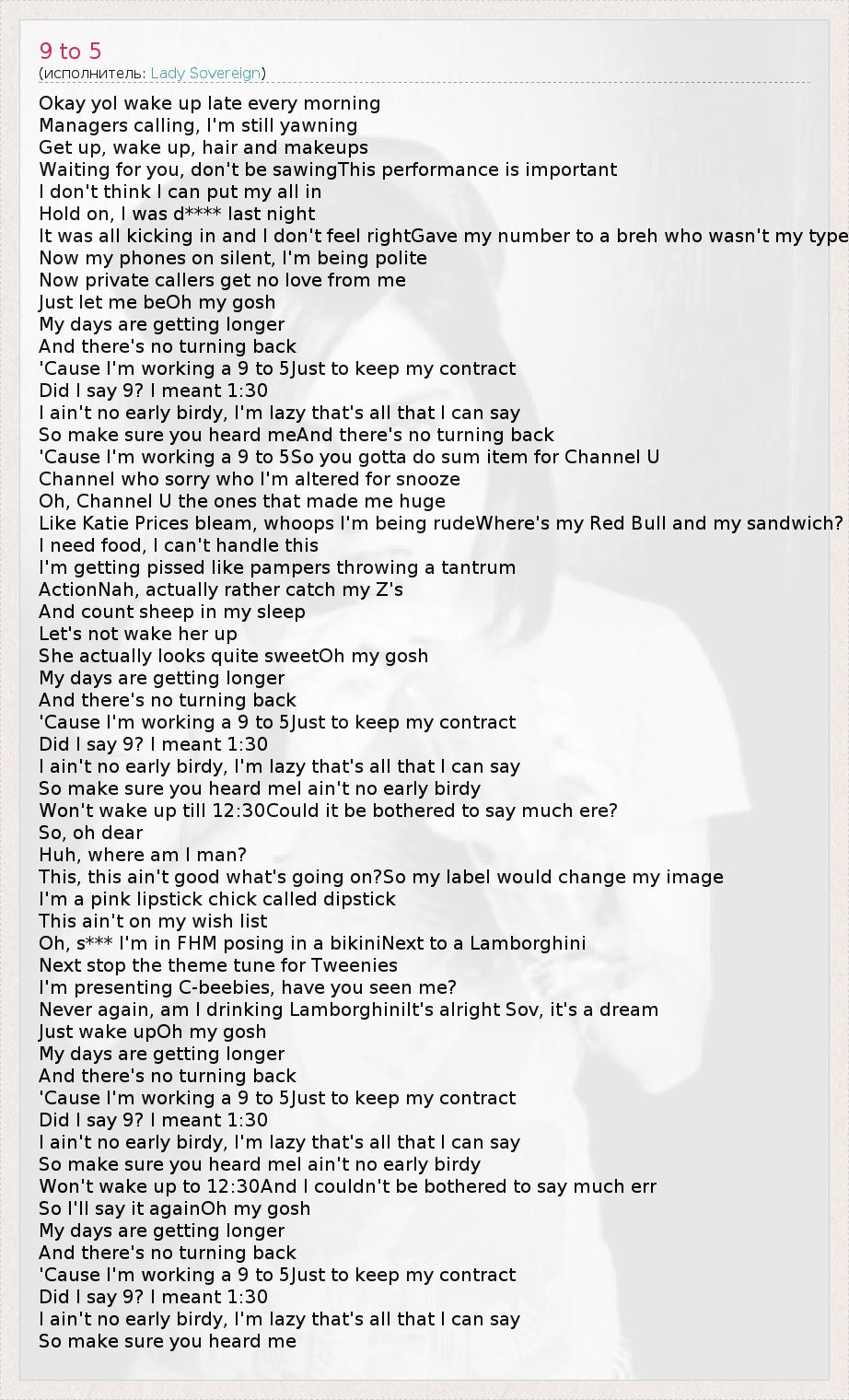 А как ты думаешь, о чем песня "9 to 5" ?