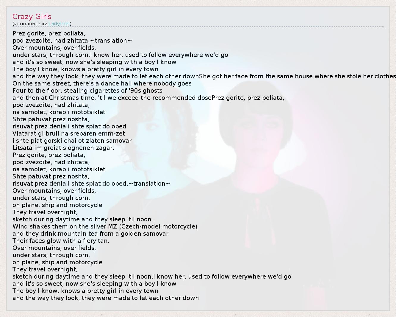 А как ты думаешь, о чем песня "Crazy Girls" ?