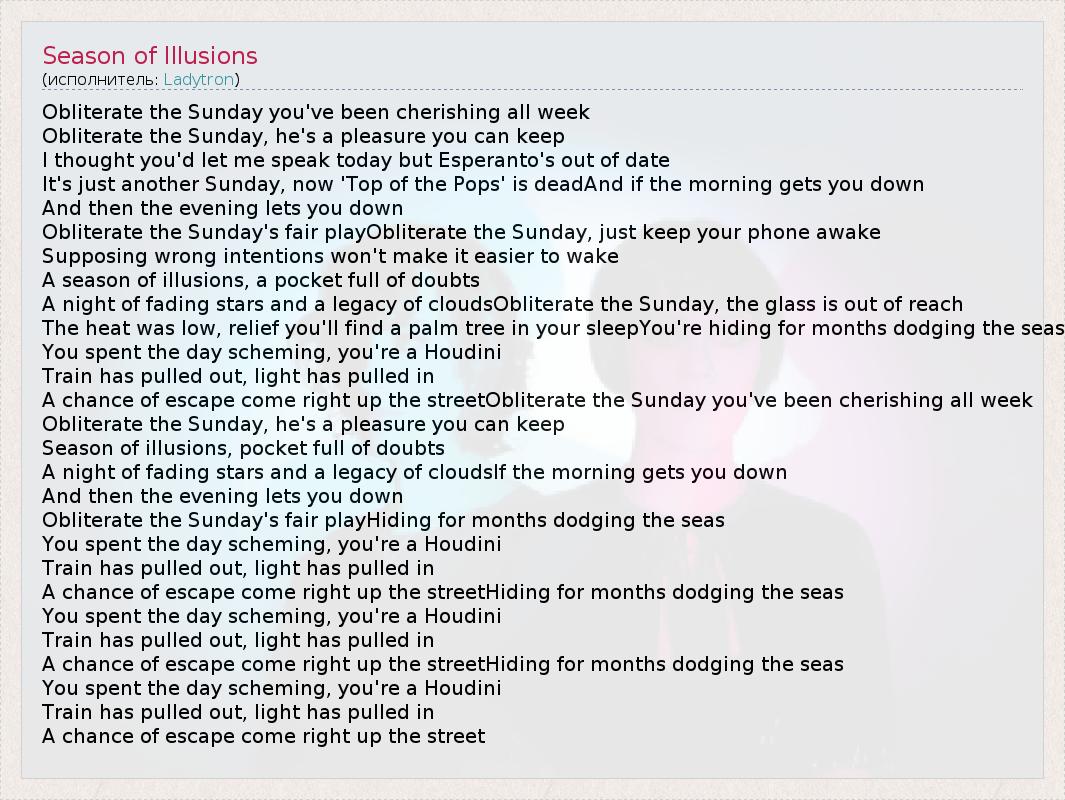 А как ты думаешь, о чем песня "Season of Illusions" ?