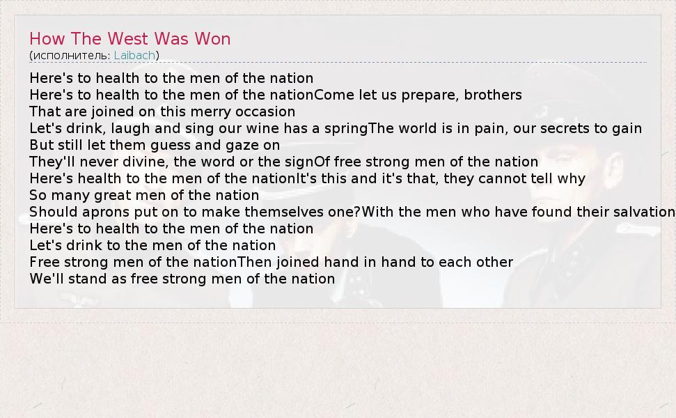 А как ты думаешь, о чем песня "How The West Was Won" ?