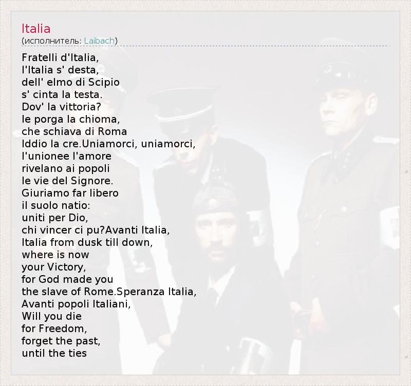 Это интересно:Laibach (Лайбах, нем. Любляна) — словенский музыкальный коллектив, один из самых известных исполнителей, играющих индастриал. В музыке и концертных выступлениях группы присутствуют элементы милитаризма и тоталитаризма.Ансамбль официально образовался 1 июня 1980 года в cловенском городе Трбовле, специализирующемся на добыче угля. В сентябре Laibach приготовил свой первый мультимедийный... продолжение