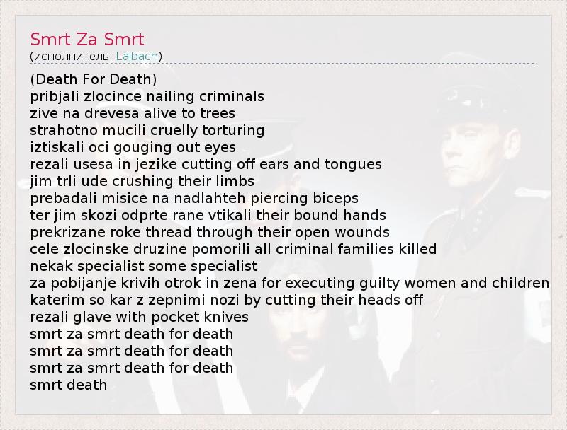 А как ты думаешь, о чем песня "Smrt Za Smrt" ?