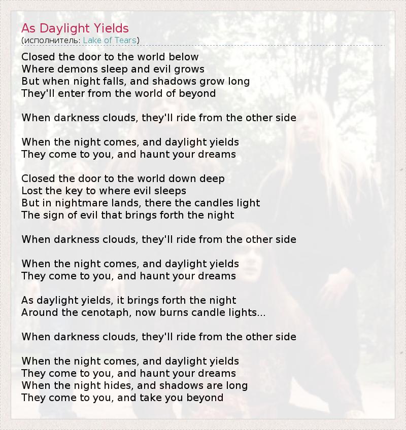 А как ты думаешь, о чем песня "As Daylight Yields" ?