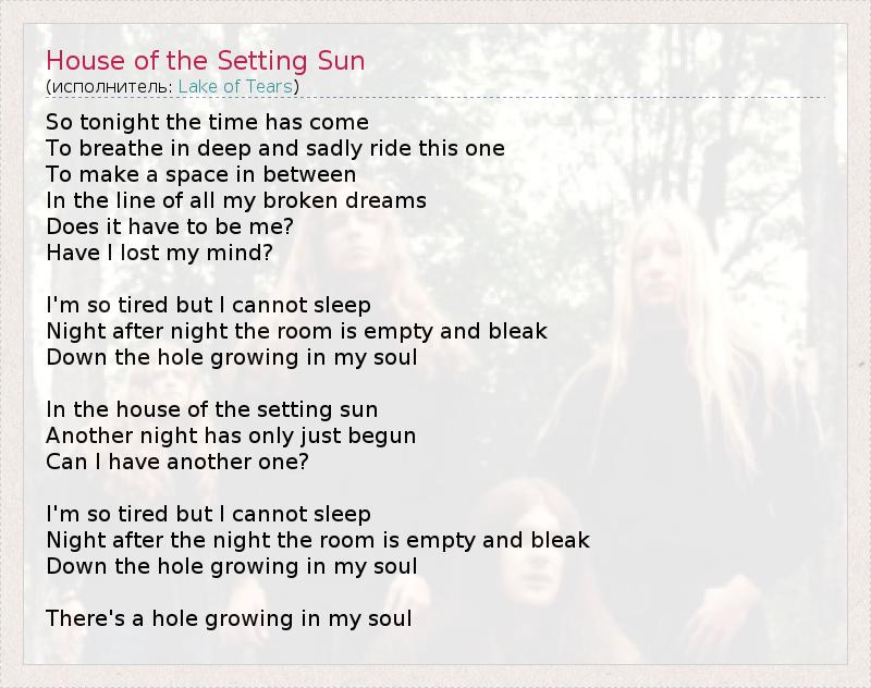 ГлавнаяИсполнителиLake of TearsHouse of the Setting Sun