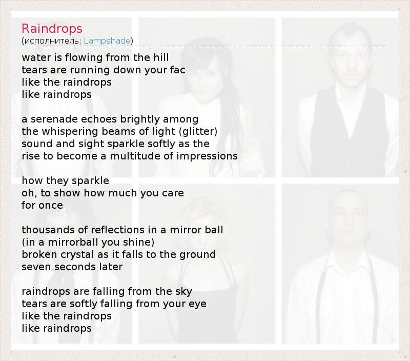 А как ты думаешь, о чем песня "Raindrops" ?