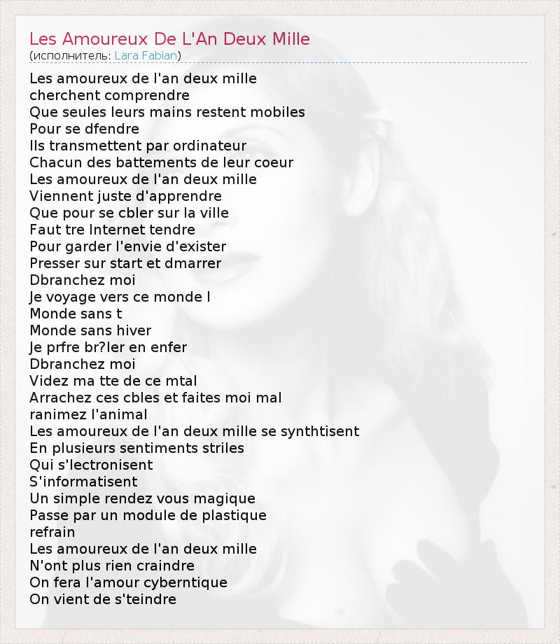 ГлавнаяИсполнителиLara FabianLes Amoureux De L'An Deux Mille