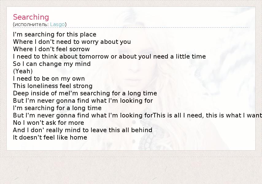 Это интересно:Lasgo - это трио танцевальной музыки из Бельгии. Группа создана в 2000 году и состоит из Эви Гоффин(вокал), Питера Лутса и Дэйва Маккулена. Группа уже продала более 5 миллионов копий своих альбомов. Lasgo - название происходит от названия шотландского города Глазго.