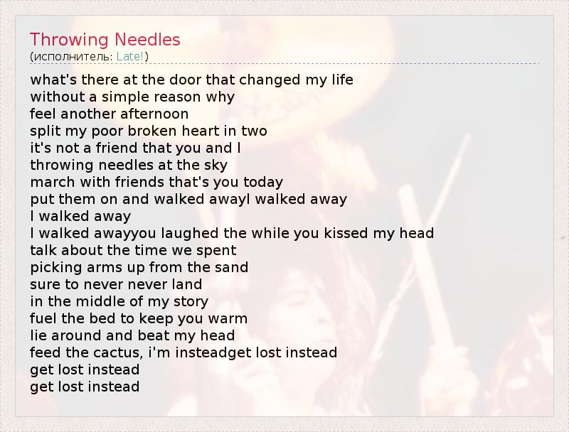А как ты думаешь, о чем песня "Throwing Needles" ?
