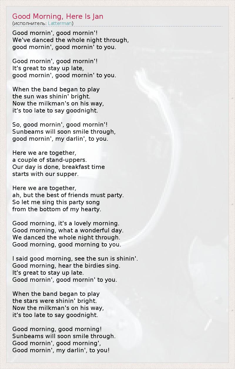 ГлавнаяИсполнителиLattermanGood Morning, Here Is Jan
