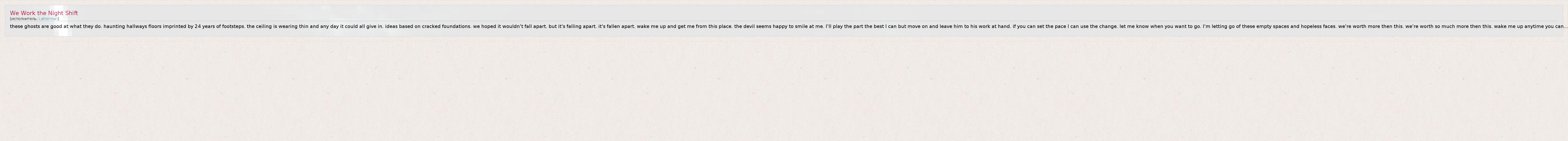 ГлавнаяИсполнителиLattermanWe Work the Night Shift