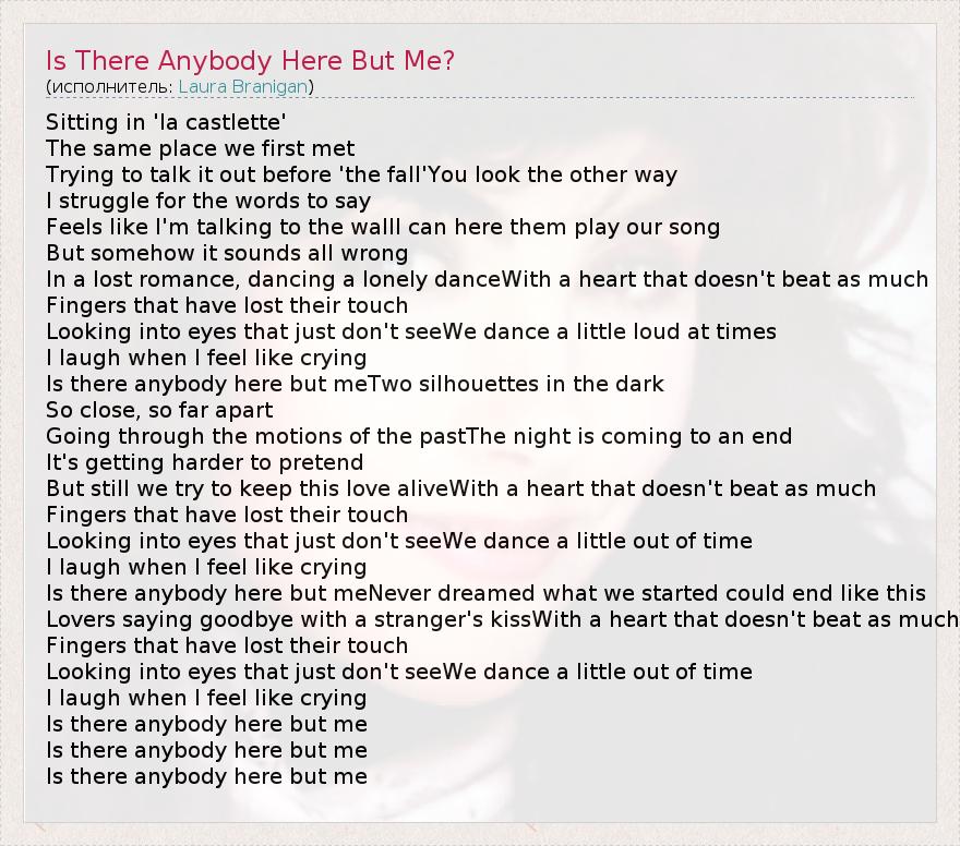 ГлавнаяИсполнителиLaura BraniganIs There Anybody Here But Me?