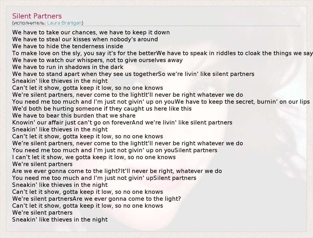 А как ты думаешь, о чем песня "Silent Partners" ?