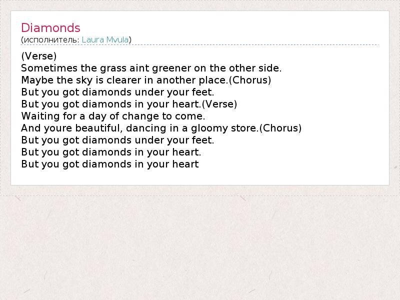 А как ты думаешь, о чем песня "Diamonds" ?