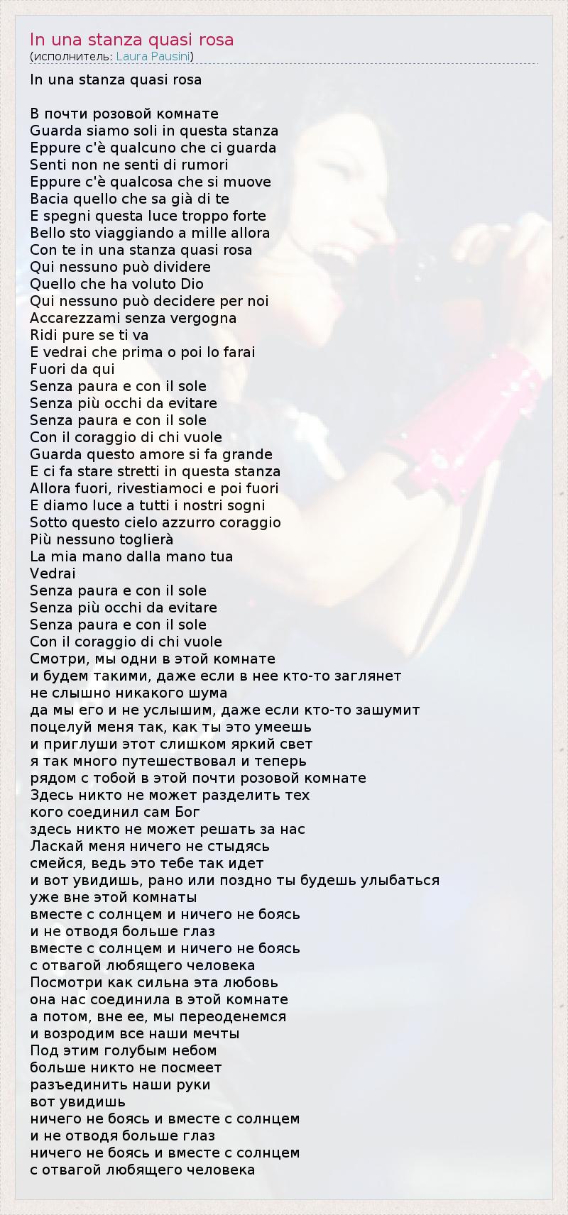А как ты думаешь, о чем песня "In una stanza quasi rosa" ?