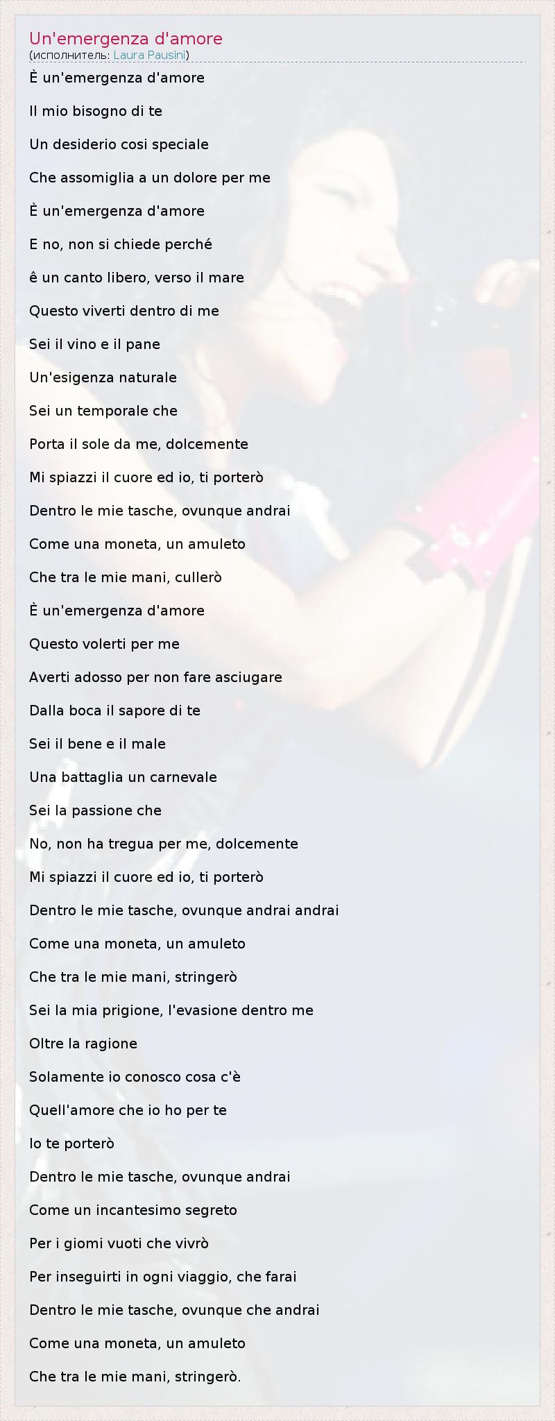 А как ты думаешь, о чем песня "Un'emergenza d'amore" ?