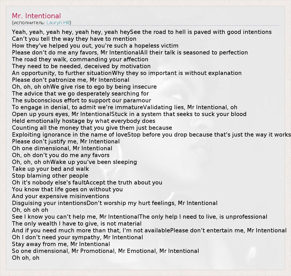 А как ты думаешь, о чем песня "Mr. Intentional" ?