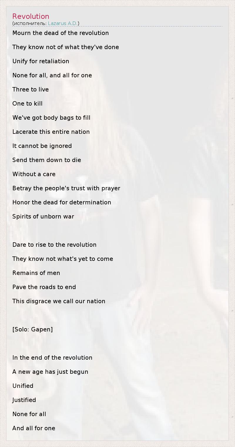 Это интересно:Lazarus A.D. - трэш-метал группа из города Киноша, штат Висконсин, изначально называлась Lazarus. Приписка "A.D." была впоследствии добавлена, чтобы избежать судебных разбирательств. Группа привлекла внимание своим звучанием в стиле модерн-трэш весной 2005 года. Без сомнений, Lazarus A.D. остались трэш-группой, но их саунд теперь далек от простых дорожек наподобие времен 80-х и Bay Area. Они вдохнули... продолжение