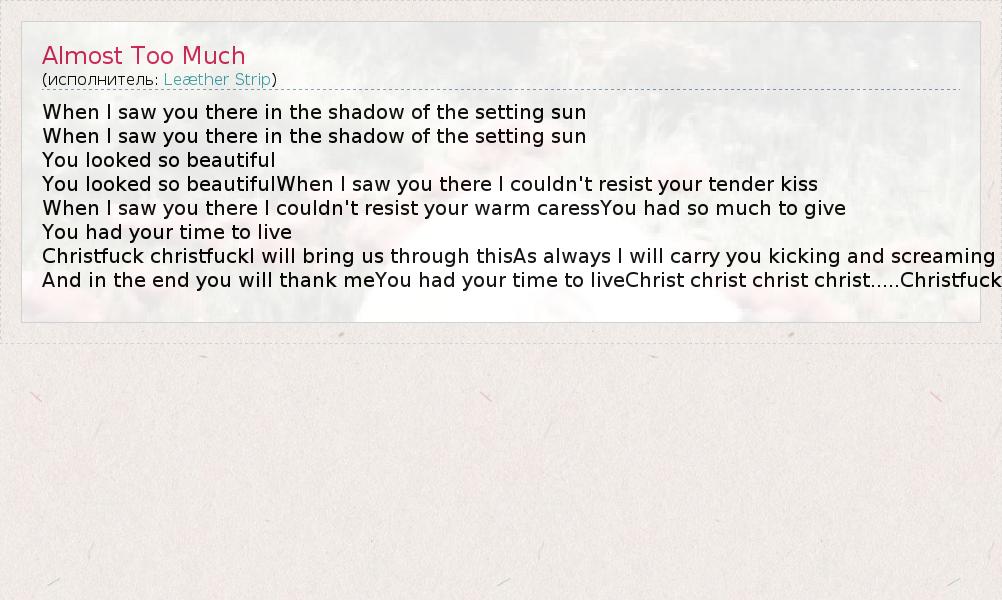А как ты думаешь, о чем песня "Almost Too Much" ?