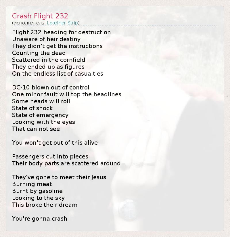 А как ты думаешь, о чем песня "Crash Flight 232" ?