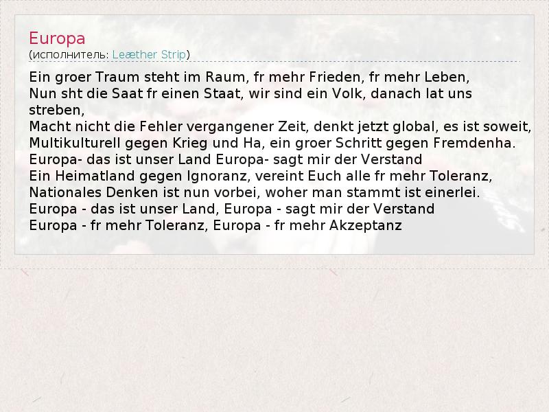 Europa - das ist unser Land, Europa - sagt mir der Verstand