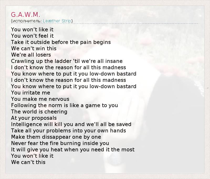 А как ты думаешь, о чем песня "G.A.W.M." ?