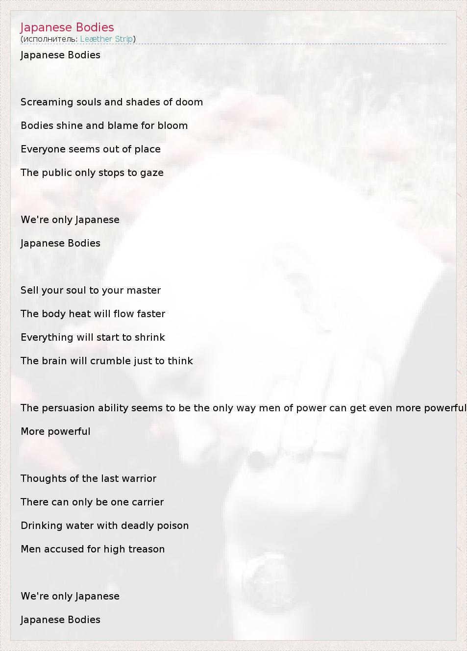 А как ты думаешь, о чем песня "Japanese Bodies" ?